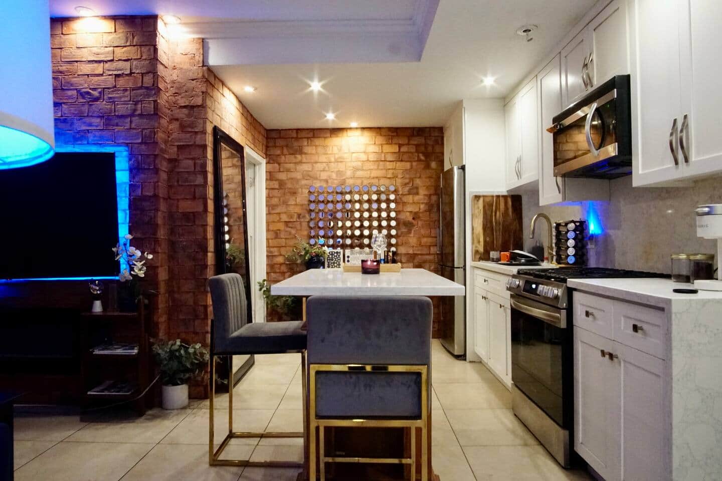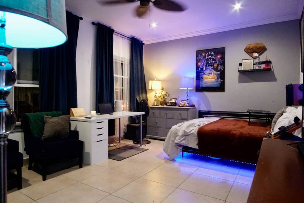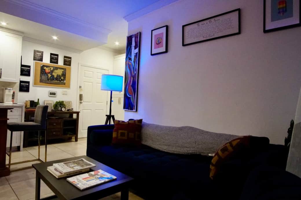 Step into a calm, beach-city base where your day flows from shoreline walks to gallery hopping to blue-lit movie nights. Drop your bags, stroll toward Alamitos Beach, sip a local espresso, and end the evening with a nightcap at the kitchen island before sinking into two comfy beds. The living room’s ambient lighting sets a mellow vibe, and the spa-style shower + in-unit washer/dryer make sandy beach days effortless. For cruisers: You’re moments from the Long Beach Cruise Terminal (Queen Mary area)—a quick rideshare away—making pre- or post-cruise stays easy. Ask about luggage drop options when available. How it feels Wake to sea air, get ready with the vanity mirror & full-length mirror Grab a coffee and wander the East Village Arts District Bike the beachfront path or lounge at Shoreline Village Freshen up in the walk-in shower; toss suits in the washer; Mix a drink at the island; cue up a film on the smart TV under the soft, blue glow At home Private room with 2 beds, smart TV, dresser & built-ins Shared chef’s kitchen with island seating; cozy lounge Walk-in shower; in-unit washer/dryer Fast Wi-Fi Neighborhood vibe (723 E 3rd St) You’re in Downtown Long Beach / East Village, a flat, walkable pocket where beach life meets arts and culture. Cafés, galleries, murals, and indie shops line nearby blocks; the sand and bike path are just a few minutes away. Shoreline Village, The Pike, Pine Ave dining, Retro Row’s vintage finds, weekly markets, and waterfront sunsets are all within easy reach. Getting around: Walk most places, grab scooters/bikes, or take a quick rideshare. The A Line (Metro) connects to DTLA; the 710/405 are nearby if you’re driving.